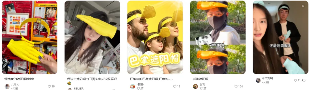 直到 4 月 7 日,一条外国博主佩戴此巴掌遮阳帽的视频在 YouTube 意外发酵,荒诞的搭配与 “实用又好笑” 的反差感戳中网友笑点,也恰好契合了 Z 世代追求 “小众、搞怪、出片” 的消费心理,传播的引爆点来得猝不及防又顺理成章。