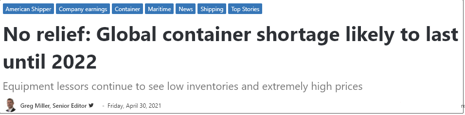 目前集装箱分布极不平均,面对一箱难求的局面,全球最大的集装箱船航运公司认为要回到疫情之前的水平恐怕还要到第四季度,但也有集装备租赁商认为可能会持续到2022年。