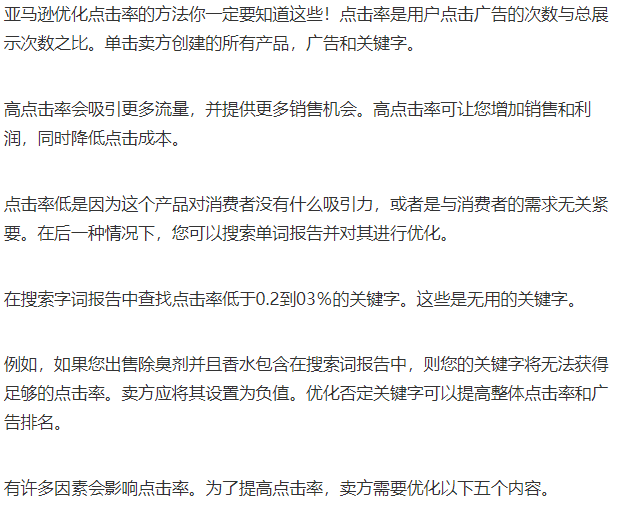 1.图片第一张照片是最重要的。主要产品图片应强调产品功能并显示出完美的细节。专业的产品摄影可以增加产品的感知价值,并提高消费者对产品质量的信心。高品质的照片可以吸引买家,并单击以了解有关该产品的更多信息。2.标题和文字产品详细信息页面上的文本非常重要。包括标题和产品说明。最佳标题和产品描述应包含相关关键字。卖方应进行关键字搜索,以确定标题和详细信息页面上的关键字是否与用户的搜索匹配。阅读关于您自己