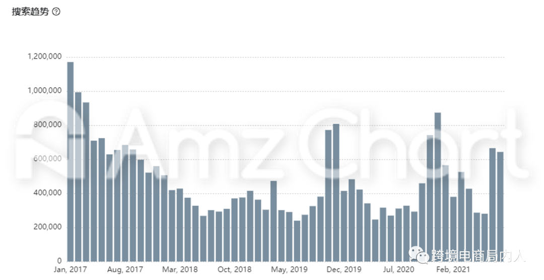 因此,建议大家在选品时通过关键词分析工具,确认过往几年该商品关键词搜索量有无周期性波动,如果有,那么证明该商品存在一定季节性,如果每年搜索量均较为平稳或波动无明显周期性,则说明该商品季节性较弱。