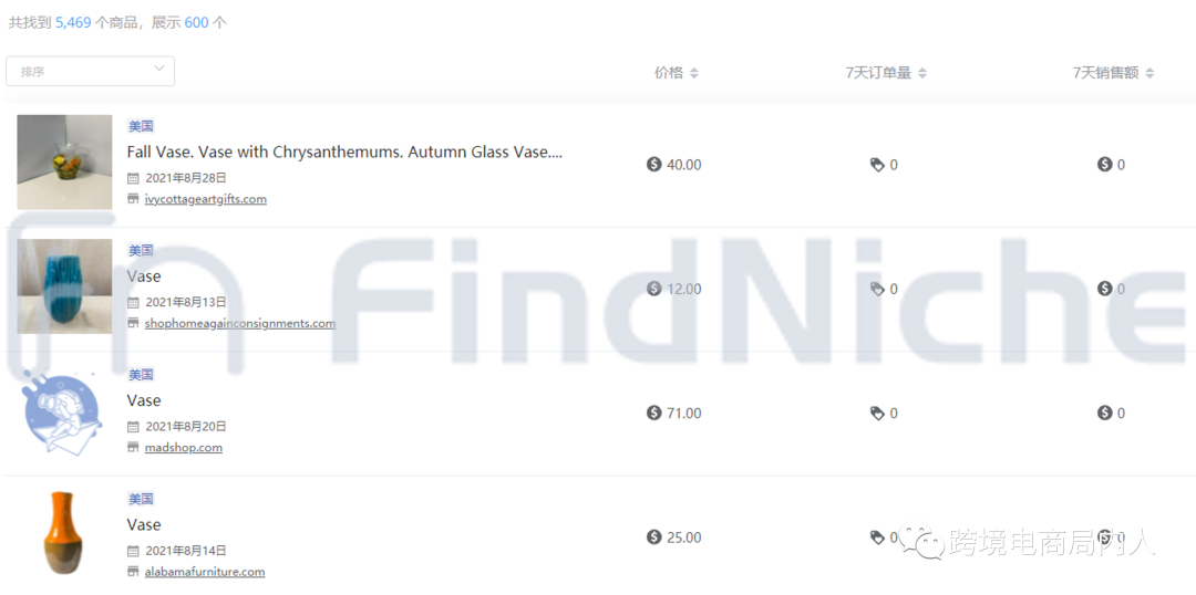 或许受这类视频影响,近30天Shopify新上架的花瓶商品超过5,400件,环比增加了近40%,但是大多数商品销量并不高,毕竟买家也会考虑运输过程中的破损风险。
