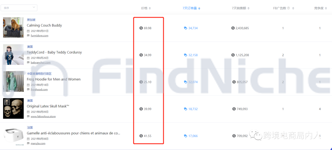 根据FindNiche的数据统计,热卖商品的客单价通常在20-70美元,因此,建议卖家选择商品采购成本在5-20美元的商品。