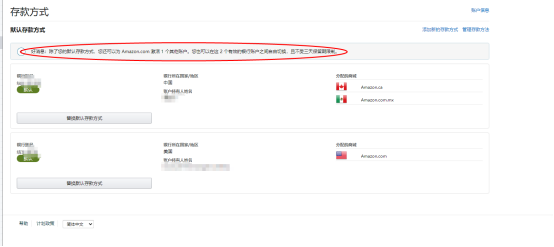 不知道在近日,有没有跨境人在登陆亚马逊账户后台后发现亚马逊又出新通知呀?通知如下:"除了您的默认存款方式,您还可以为Amazon.com激活1个其他账户。除此之外您也可以在这2个有效的银行账户之间自由切换,并且不受3天保留期限制。"该通知信息的内容,其实也就是说,卖家小伙伴可以在原有收款账户基础上再额外添加1个收款账户,同时卖家小伙伴还可以自由选择并切换使用2个有效的收款账户。如图:伴随着此番信息