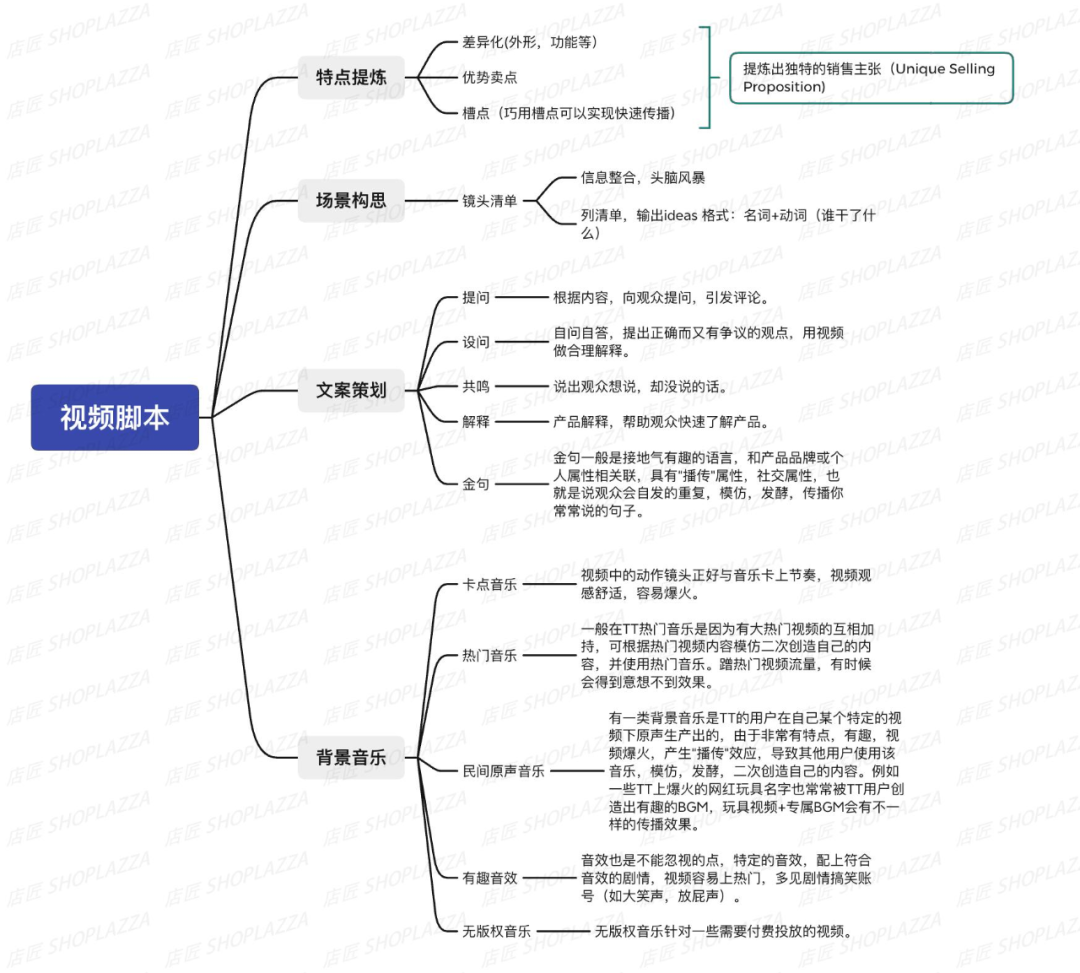 店匠SHOPLAZZA 将视频脚本需要创作的内容为大家进行了梳理,先看思维导图,再讲解: