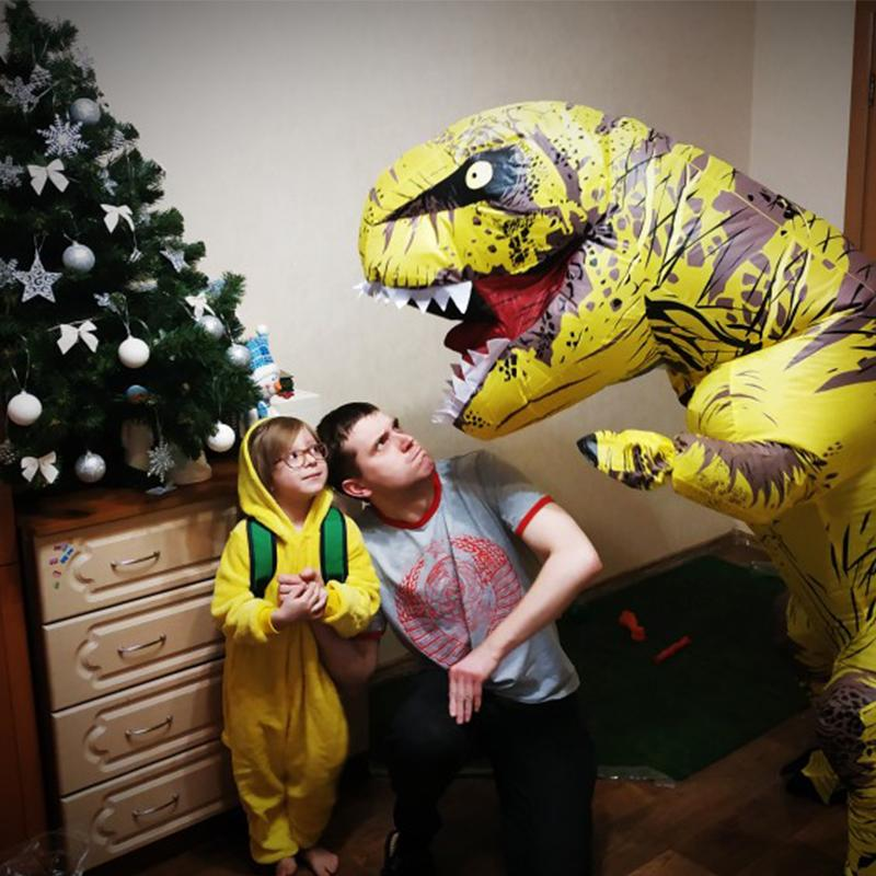 有人穿上它参加party,有人穿它表白,有人穿它游行,还有人在疫情时拿它当防护服……似乎没有恐龙服不能到达的现场。