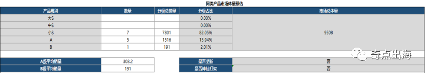 阿木对这类产品进行了调研,目前该类产品在美国站总体量为9508,其中小S占7个,总销量占了7800,A级和B级分别是5个和1个;从数据上看,目前这类产品头部卖家虽然占据了大部分市场体量,但是各头部卖家的实力差距并不大,市场竞争环境也还算舒适。