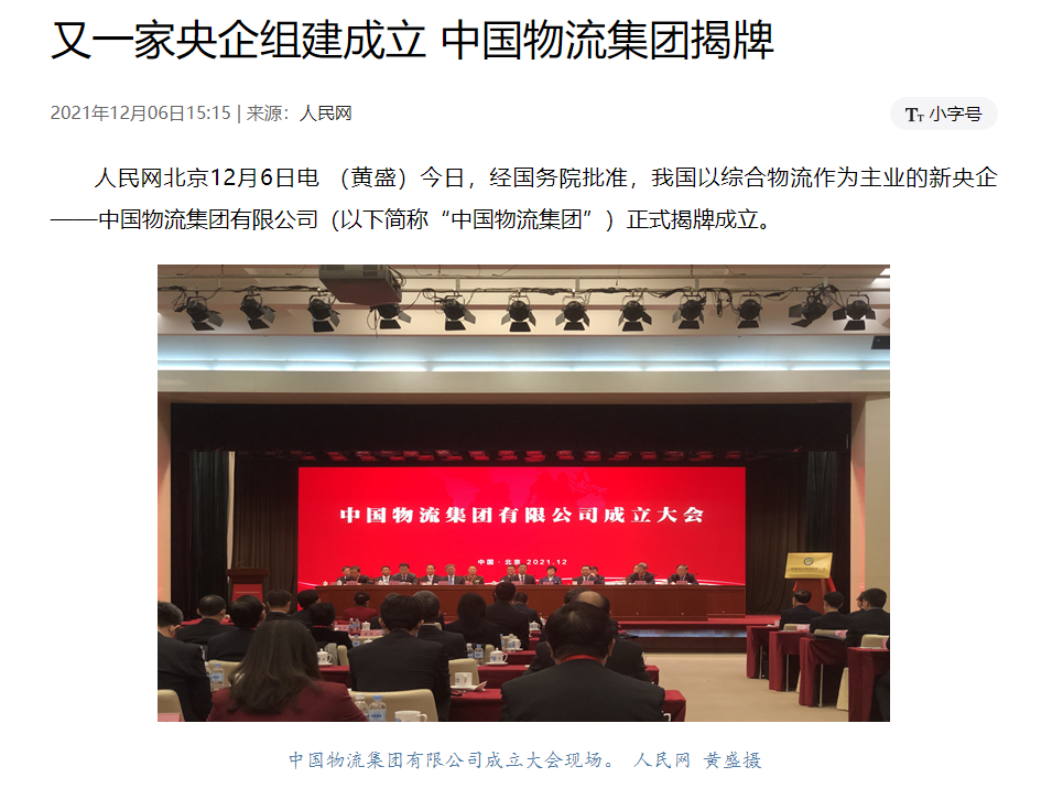 今天12月6日,经国务院批准,我国以综合物流作为主业的全新央企——中国物流集团有限公司正式揭牌成立!