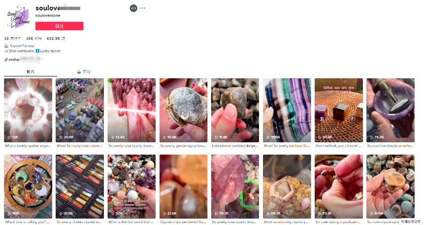 在TikTok上一些与水晶有关的热门话题#crystals浏览量达到了77亿, #crystaltok也达到了24亿浏览量。