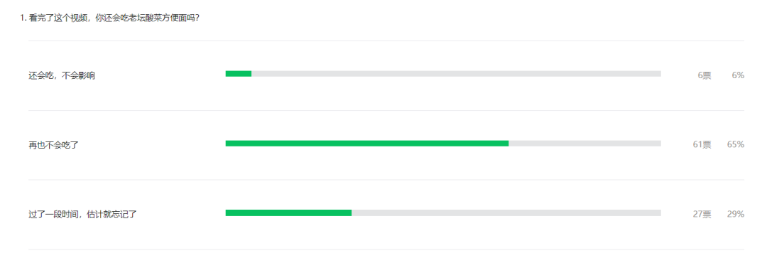 昨天的315一过,到淘宝上搜索"老坛酸菜"已经没有了搜索结果,只是我也不知道家里买的老坛酸菜方便面,该怎么操作了。先放着吧,昨天的文章插入了一个投票,发现选择过了一段时间,估计忘了吧,占了29%