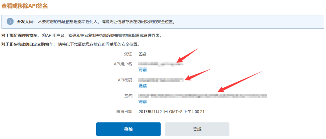 配置完成即可实现收款,目前API仅开放给PayPal企业号。
