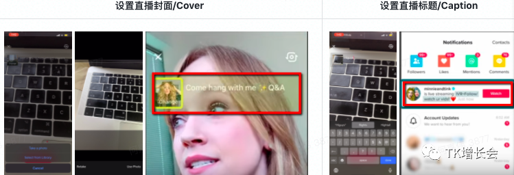 开播后卖家可通过"take a photo" (拍照)或者"select from library" (从相册中选择) 设置直播封面;