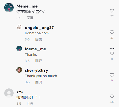 这款吸管套装的标签#bobatribe在TikTok上获得了4300万的播放,在标签下,有很多博主在分享自己使用Boba吸管喝奶茶。