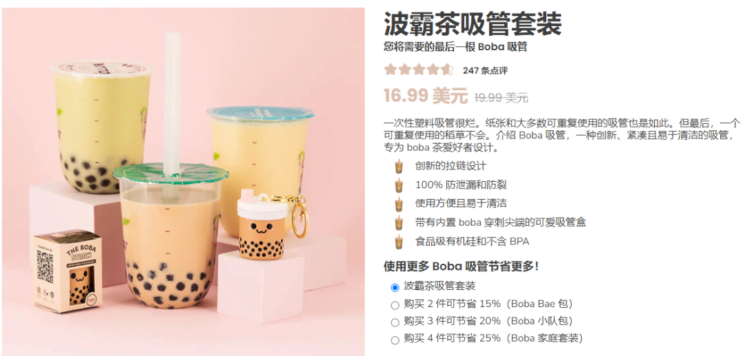 这款Boba吸管在独立站的价格为27.99美金。