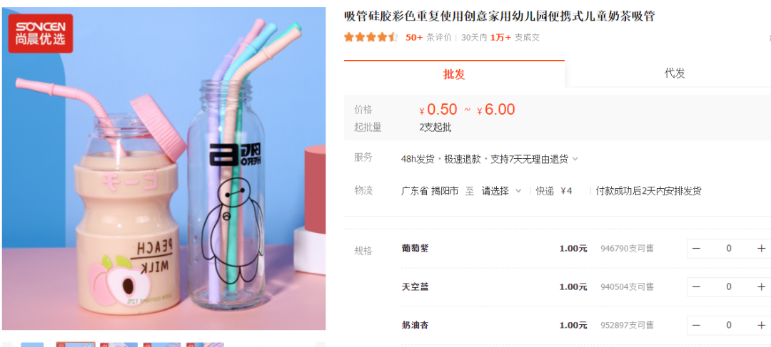 目前这款产品在1688上还没有找到货源,但是已经有相似的硅胶吸管在售卖,这款产品在1688仅需1元,在过去30天内售出了1万+的订单。
