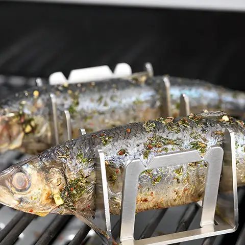 使用 BBQ Rescher Multi Grill Rack,烧烤变得酥脆。实用的烧烤架适用于各种烧烤食物,确保外皮酥脆。无论是排骨、五花肉、培根还是牛排,都可以轻松地将肉以理想的角度放入支架中,从而有针对性地滴下脂肪。BBQ Rescher 的 Multi Grill Rack 确保几乎所有要烧烤的食物都有合适的外壳。鸡腿和烤肉串也可以轻松放入不锈钢支架中,从而间接烹饪 - 不会燃烧和难看的黑点。这样可以保持肉质鲜嫩多汁。烤架由不锈钢制成,因此之后易于清洁。绝对是每一次烧烤的必备品!