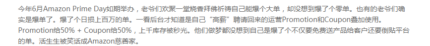 前段时间就有人发帖称:亚马逊运营操作失误致公司亏损上百万。