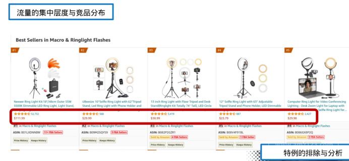 除了上面这些,我们对这个类目还要做特例的排除。我们要参考和产品定位、价格、review都比较相似的竞品才有参考意义。