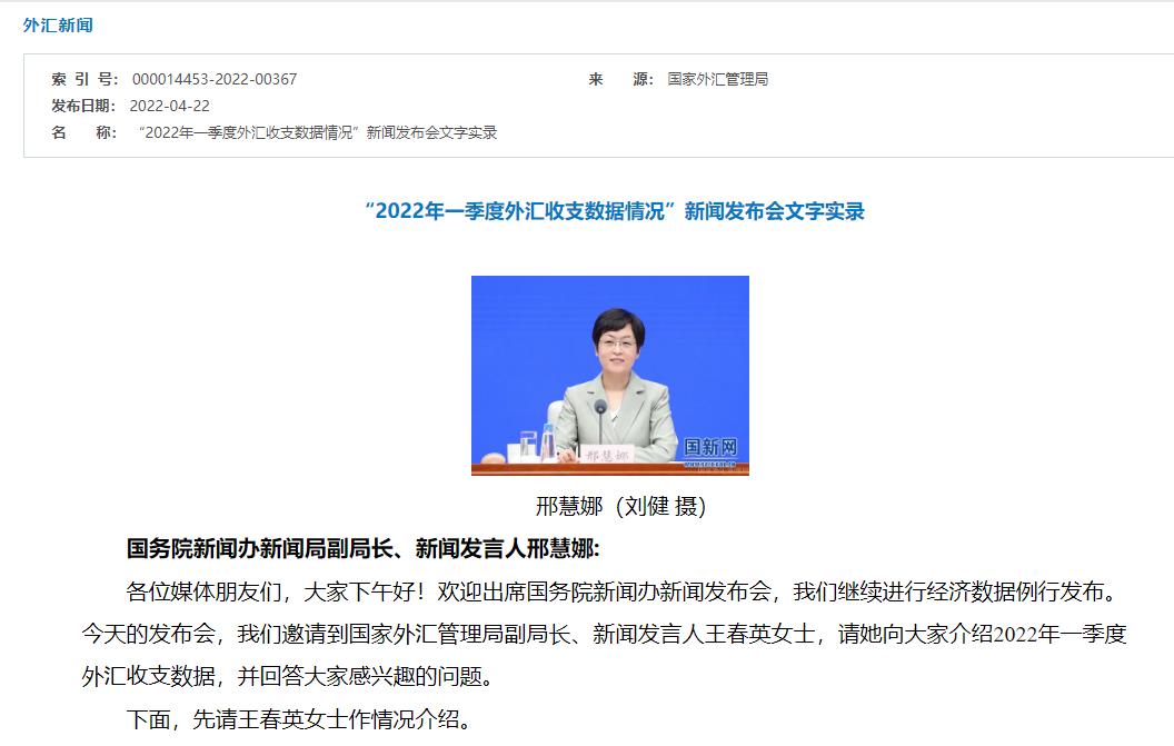 4月22日下午,外汇局开了新闻发布会。