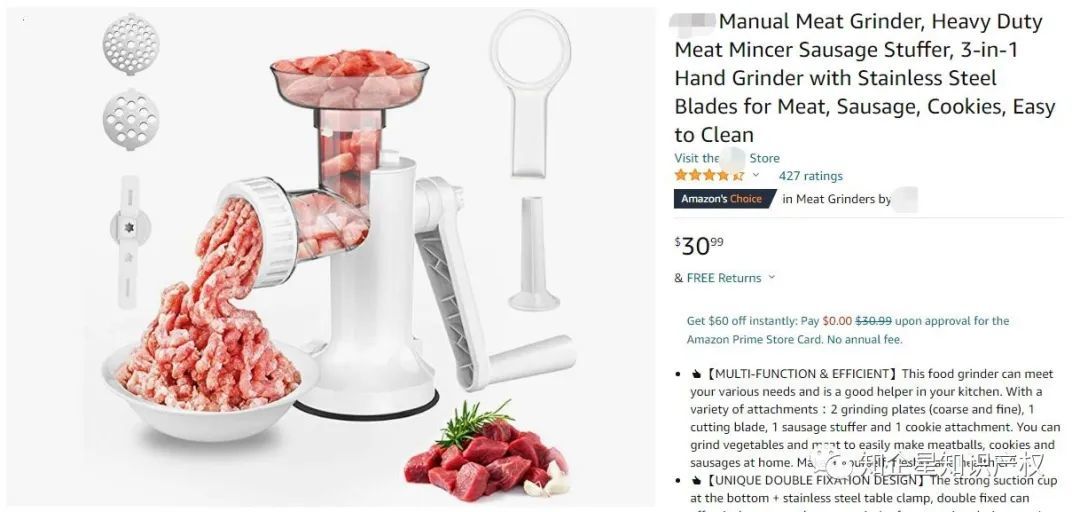 今天在浏览亚马逊的时候,看到一款手动绞肉机,它是美亚站的Amazon'sChoicein Meat Grinders ,售价30.99美金,留评455颗星。