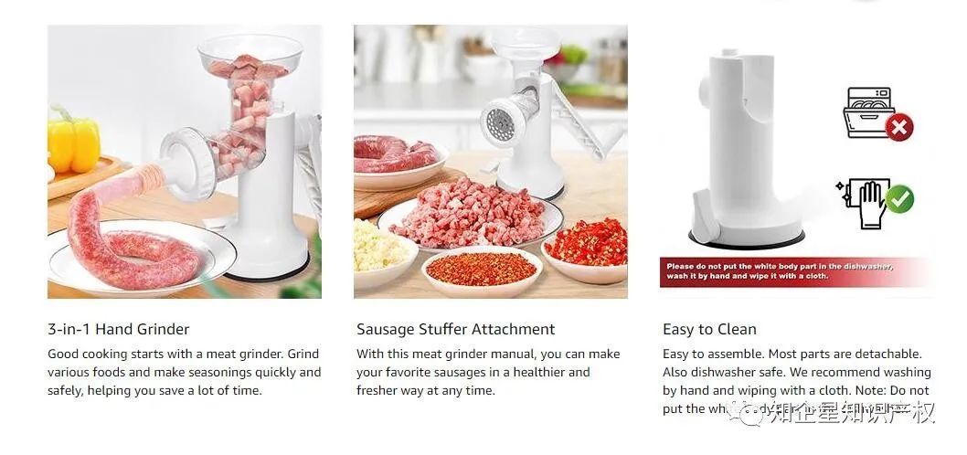 这款家用绞肉机通过手动控制,底部有强力吸盘搭配有台夹,可以双重固定,防止在使用的时候移动;透明的搅动旋转通道,能方便看到绞肉过程;出口配有两个磨盘,可以研磨各种蔬菜和肉类,制作香肠、肉丸和菜饼都很方便,所以产品在美亚站销量很不错。