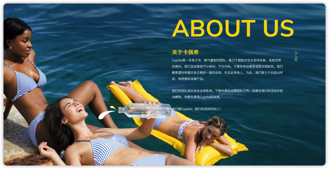 Cupshe,卡佩希成立于2015年,是中国时尚品牌出海的领头羊。成立初期Cupshe并没有主打泳衣品牌,产品多且杂。一直到2016年,开始品牌转型,主打泳衣系列,创始人赵黎明坚持贯彻"帮助消费者通过穿着合适的泳衣而感到自信和美丽"的理念。