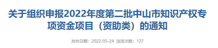 自2020年11月16日起至2022年6月17日为止符合以下条件的资助均可申报,自取得商标注册证书后以实际证明文书记载的注册时间或签发时间为准1年内可申报商标资助。申报材料(一式一份)(1)中山市注册商标资助申请表;