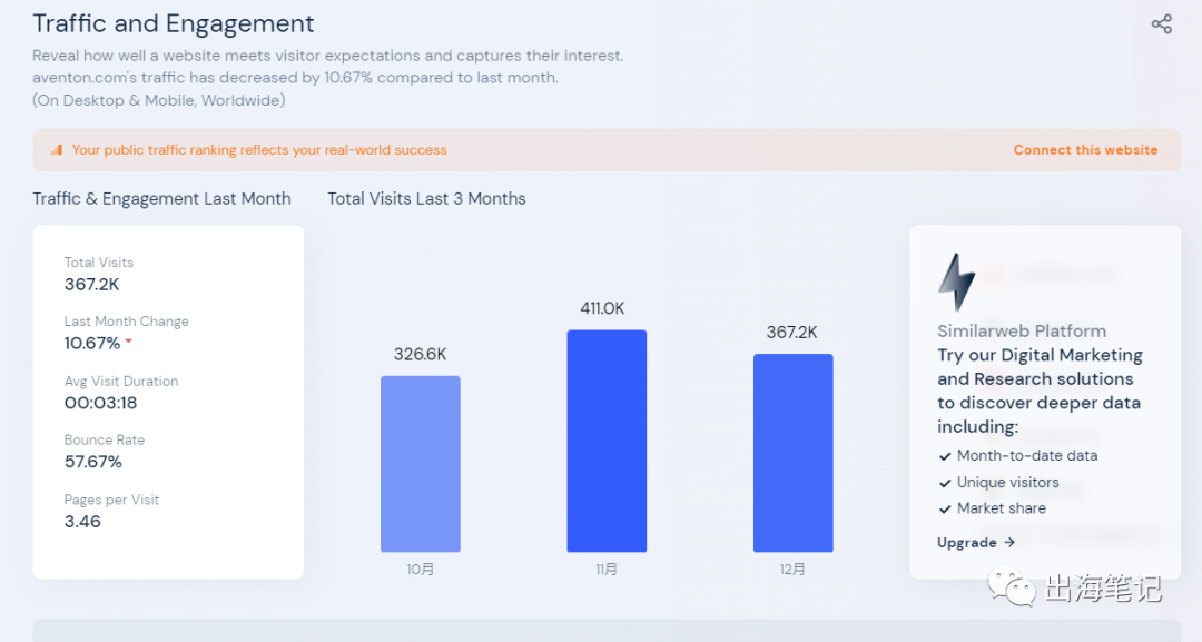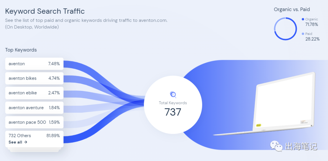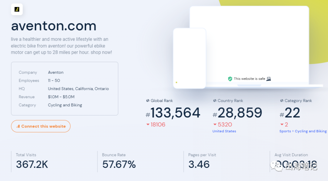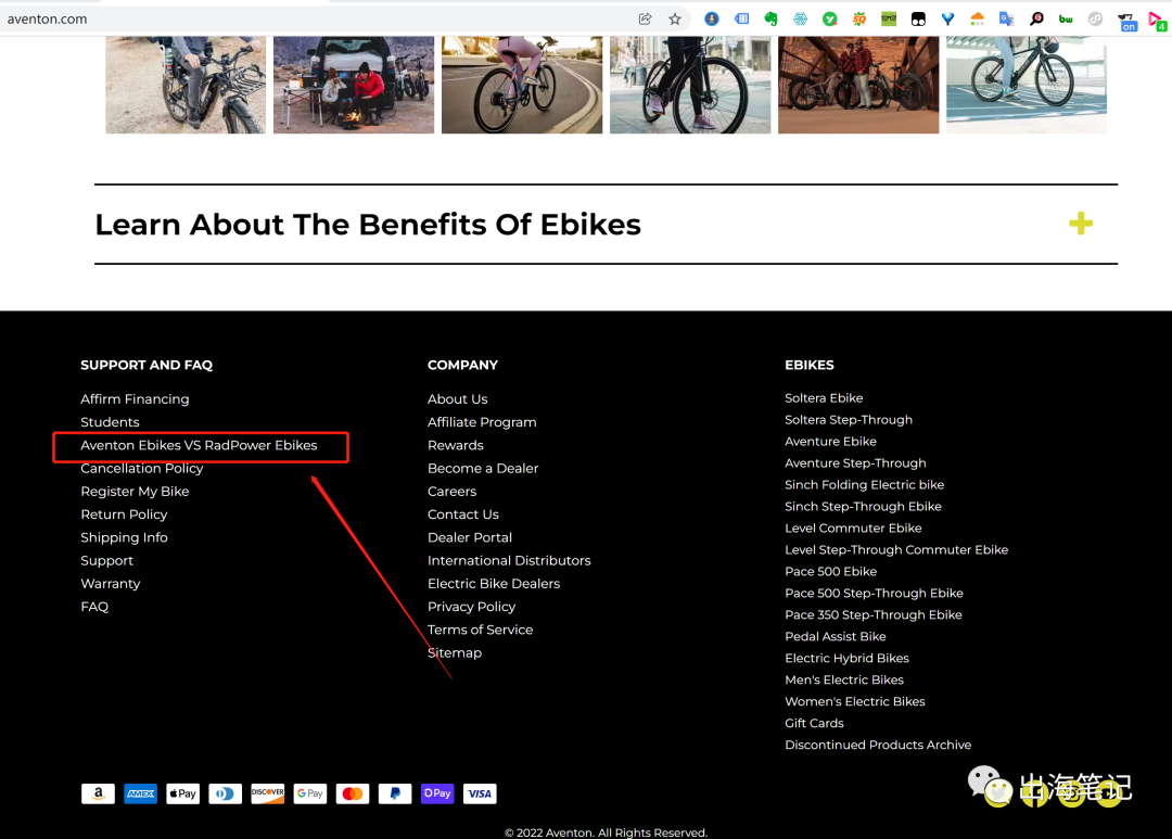 similarweb上(虽然数据可能也有水分,但我每次分析独立站都喜欢用这个工具先宏观看一下)。我们看到aventon排名22之后颇为惊讶,这意味着什么?这意味着这一家 在2020年刚崛起的公司竟然在排名上一举超过了美国的本土劲旅Radpower,要知道Radpower是一家07年就成立的公司,按理上来说不管是财力物力人力都是碾压aventon,于是我就去搜索一些相关的资料,我发现Aventon相当的大胆,他居然在自己的官网发布了一篇Aventon vs Radpower的"碰瓷"文章,还大大咧咧地放在脚部菜单醒目位置,SEO+碰瓷"双输出"。