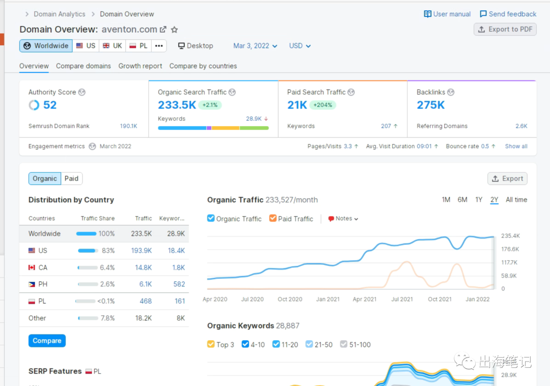 自然流量去到可怕的233k!!看来品牌力和SEO做的很不错!