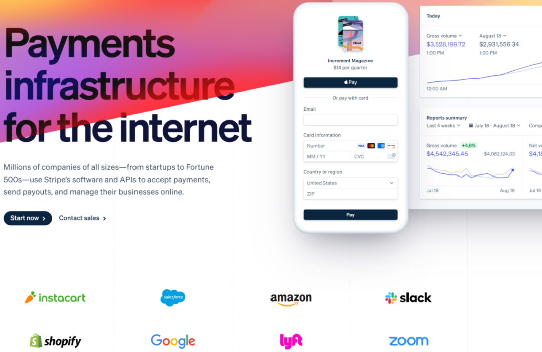 初创公司:通过推出 Payment Links、Stripe Tax、Stripe Invoicing、Revenue Recognition、Stripe Atlas 等产品降低创业成本,Payment Links 尤其好用,一行代码就对接支付系统。而税和发票等自然也是很多小公司头疼的事情,Stripe 一口气帮你办了。另外 Stripe 也开始投资一些 fintech 的机会。