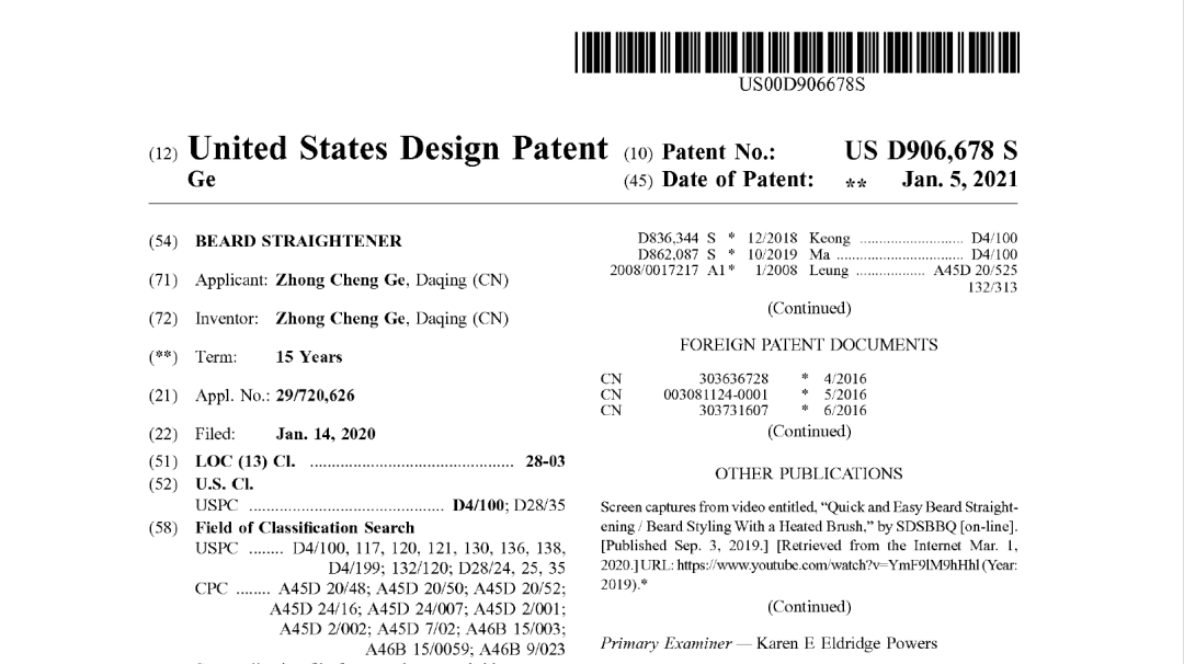 指定大法官:约翰·罗伯特布莱基指定的地方法官:加布里埃尔·富恩特斯案件类型:外观专利侵权缘由:被告方侵犯原告产品专利,在互联网利用原告专利产品从事违规销售。