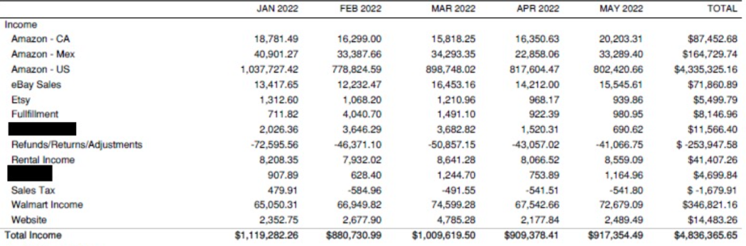 扣完以上费用后,卖家还有一系列员工、仓库、银行、办公、软件、水电、专业人士等支出,五个月合计有38万美金。