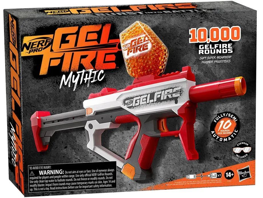 这款新品名叫Nerf Pro Gelfire Mythic,所使用的子弹颗粒是吸水凝胶,装填到弹夹之前,需要浸泡在水中,发射击中目标后,凝胶弹会爆裂,并不需要后续的清理。