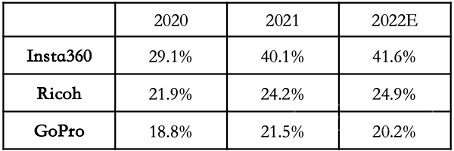(2020-2022年全球消费级全景相机市场份额分布)2022年7月发布的《BrandZ 中国全球化品牌》研究报告中,影石Insta360赫然在列。作为中国全球化成长明星的一员,未来可期。