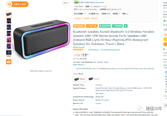 这篇文章写在黑五周,对比上篇文章里面的价格提了4美金,评价增加了100多个,蓝牙音响在黑五网一是销量很猛的,估计是提价跑24号的deal,和他会员日提价跑PD是一个操作,PD排名升的很快,估计黑五又是一波。