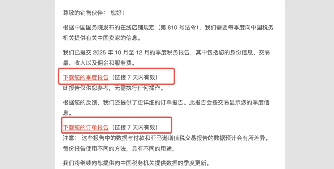 亚马逊已经把2025年第四季度报送相关数据正式抄送给卖家了。